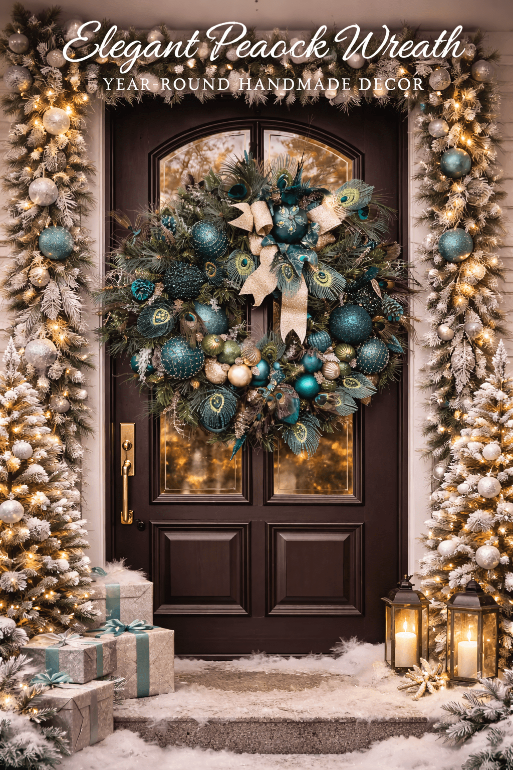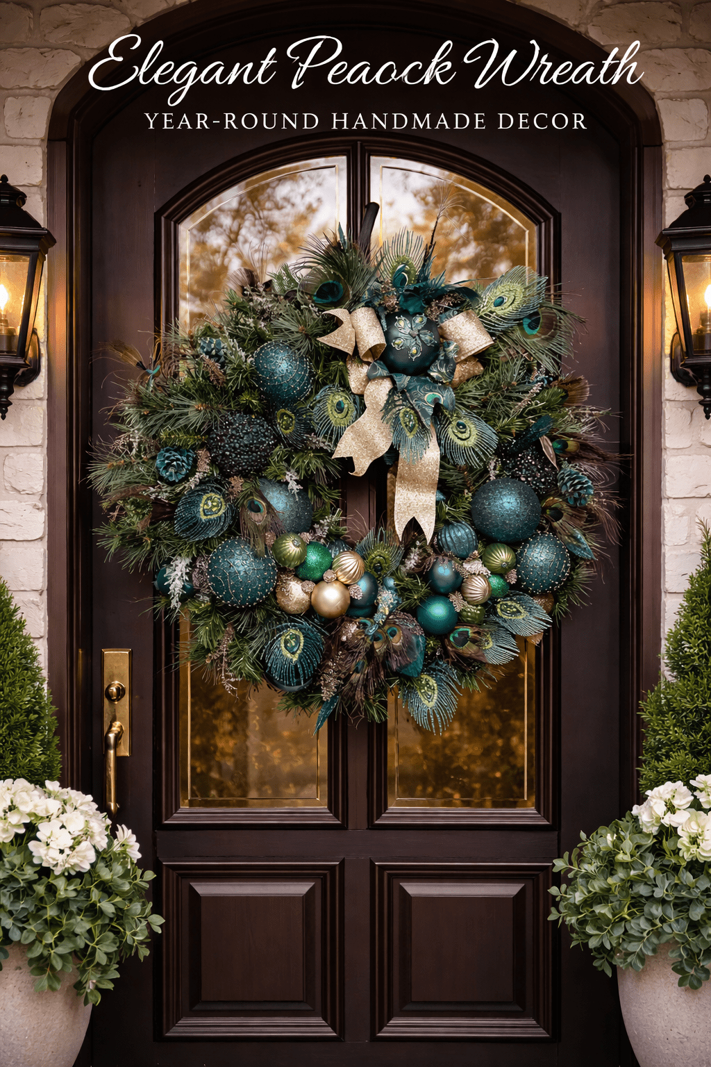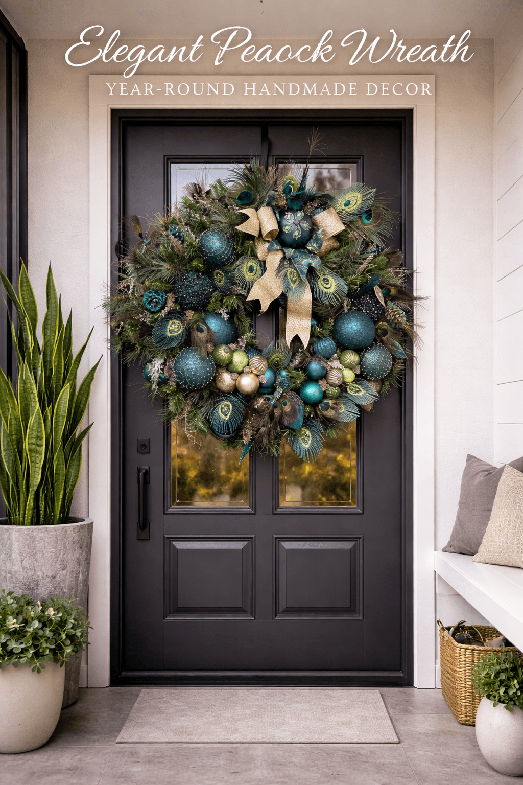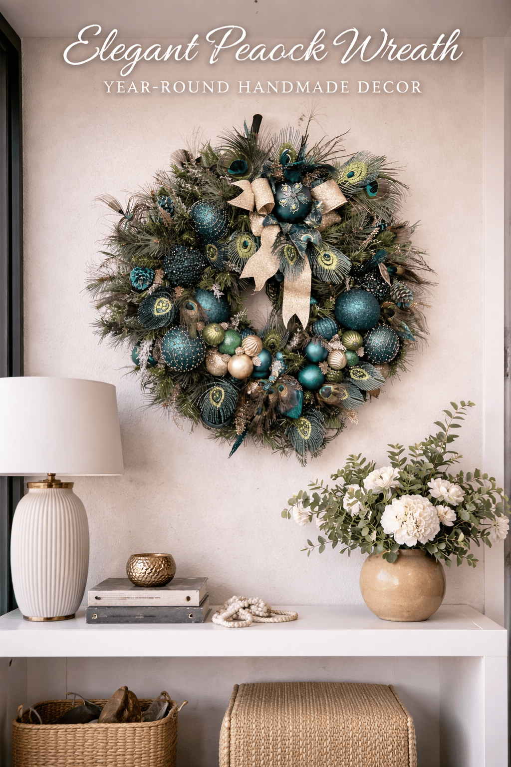 Elegant Peacock Wreath – Year-Round Handmade Home Decor