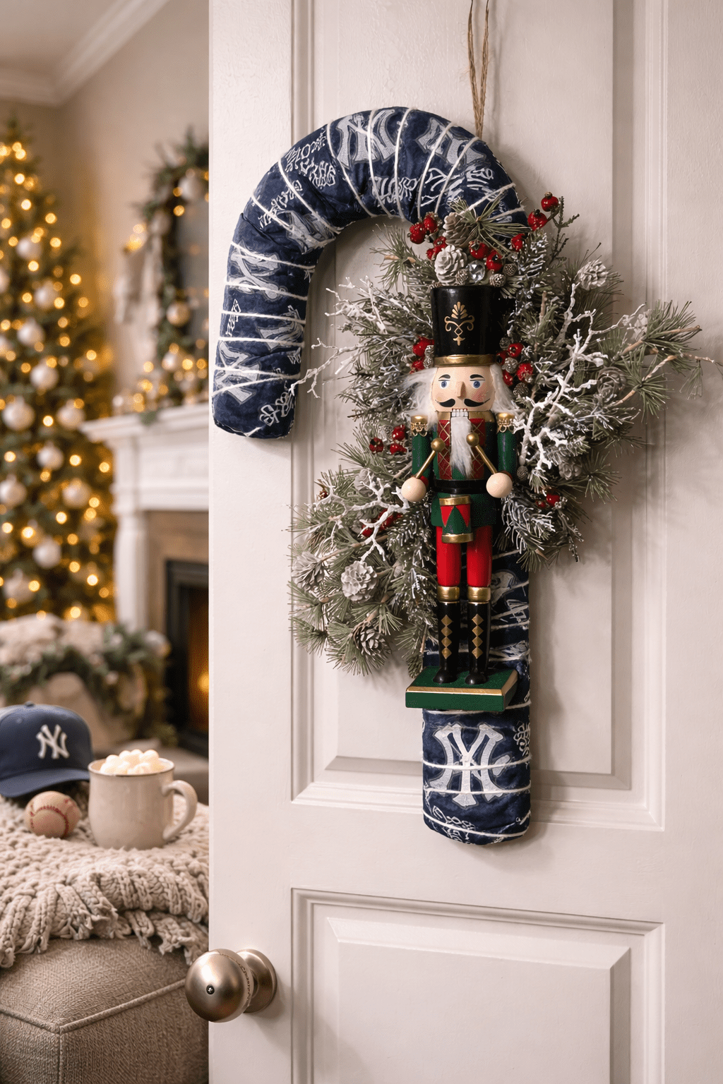Not a Yankees fan? No problem! We can create these candy cane wreaths for any team across MLB, NFL, NBA, NHL, NCAA, and MLS. Reach out for details, and let us bring your team spirit to life!
