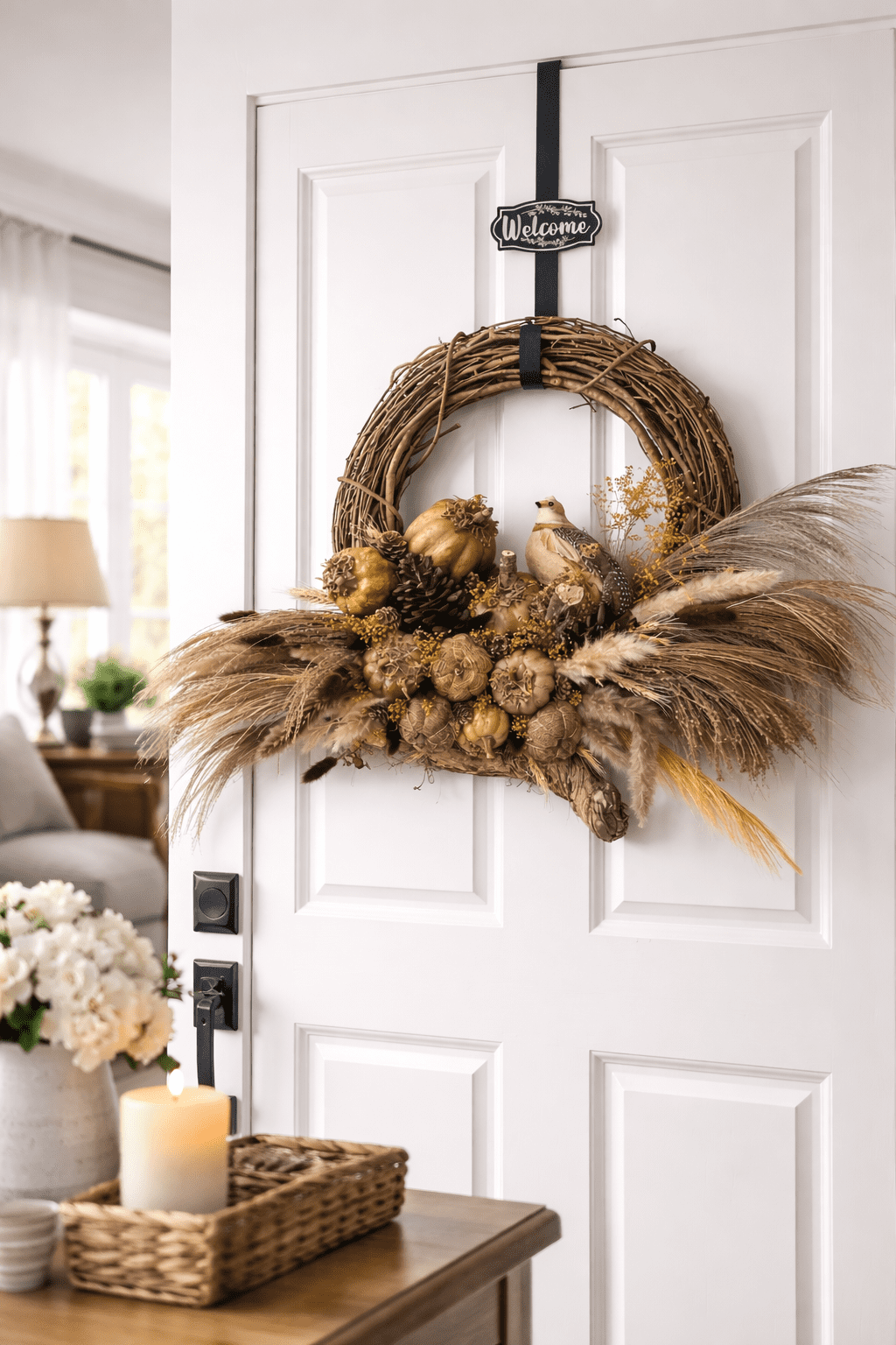 Shop this wreath now: Rustic Fall Wreath – Handmade Neutral Autumn Door Decor