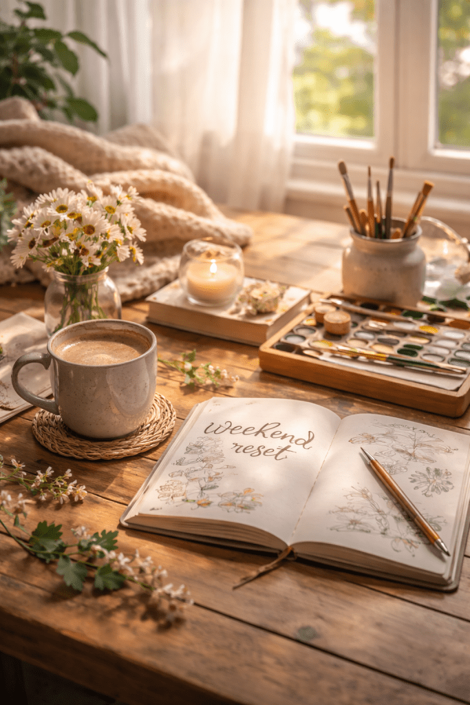 Resetting doesn’t require big plans. Simple activities like crafting, journaling, walking, listening to music, or enjoying quiet time at home allow thoughts to settle. As a result, clarity and calm return naturally.